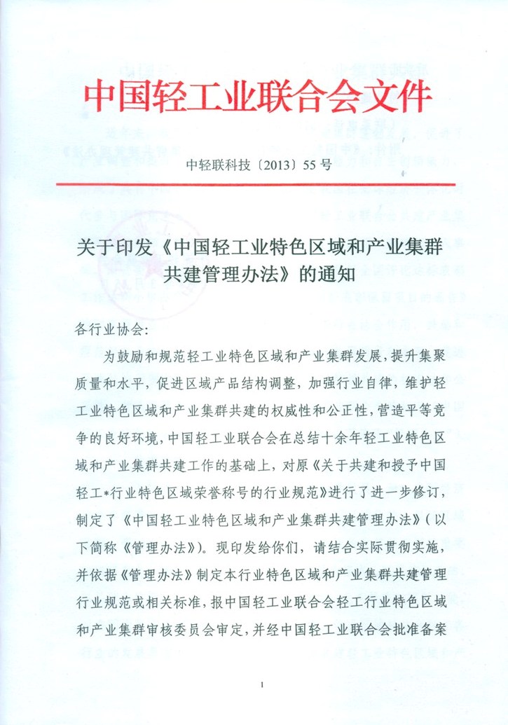 | 1、 | 中国轻工业特色区域和产业集群共建管理办法 |