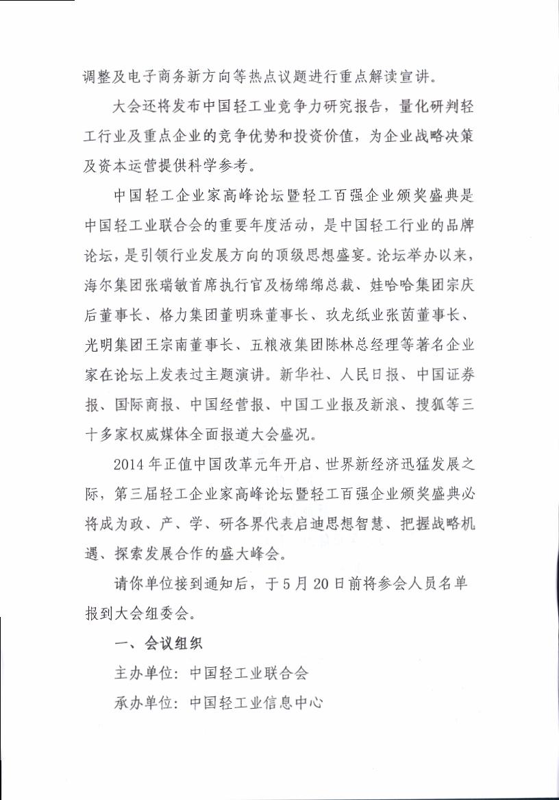 关于举办“第三届中国轻工企业家高峰论坛暨轻工百强企业颁奖盛典”的通知