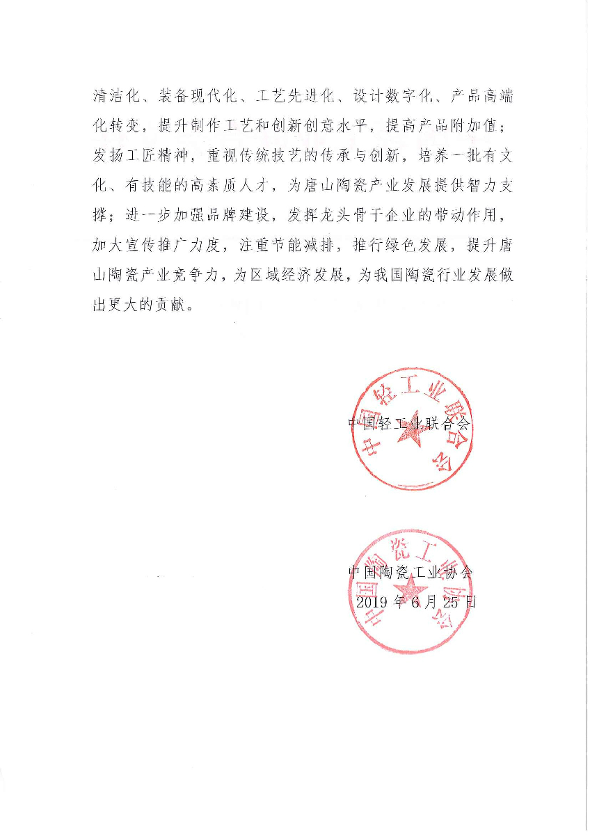 关于授予河北省唐山市"中国北方瓷都·唐山"称号的通知