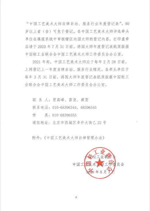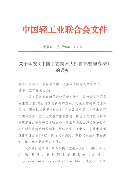 关于印发《中国工艺美术大师自律管理办法》 的通知