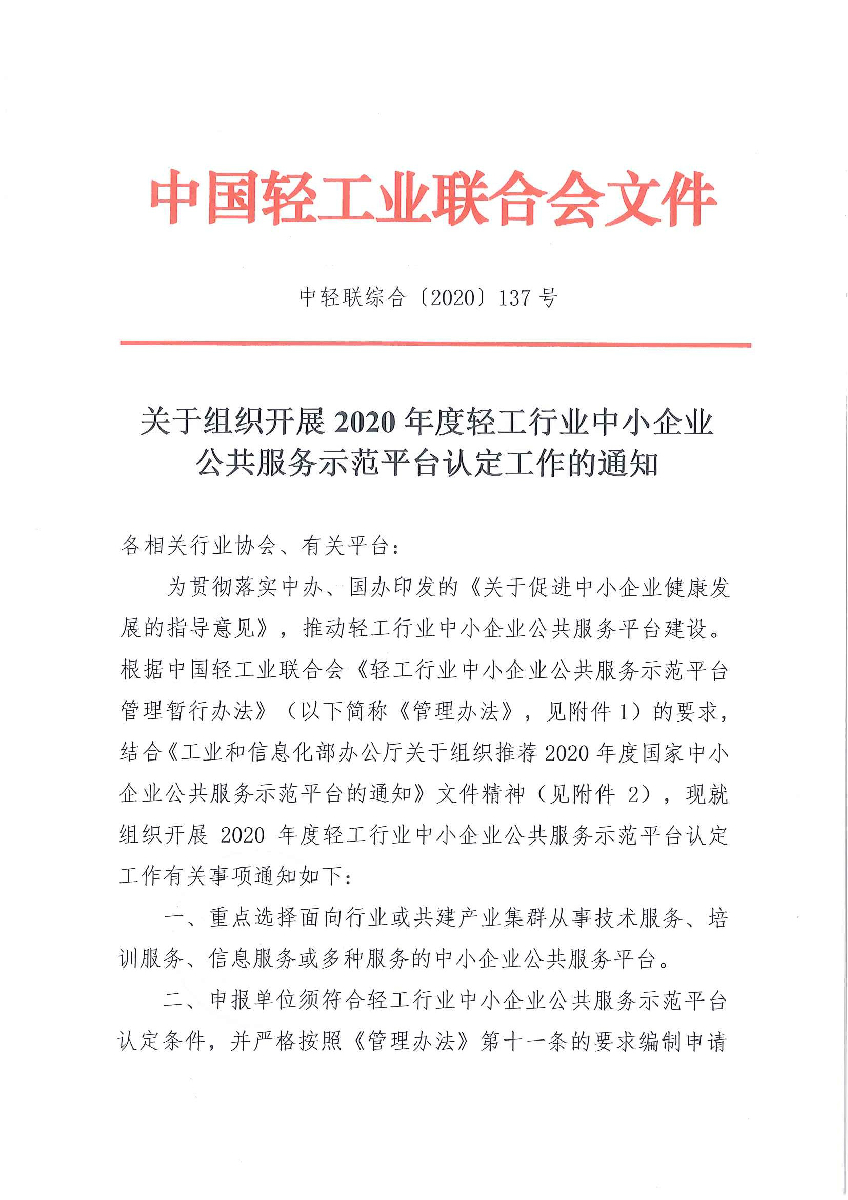 关于组织开展2020年度 中小企业公共服务示范平台认定工作的通知