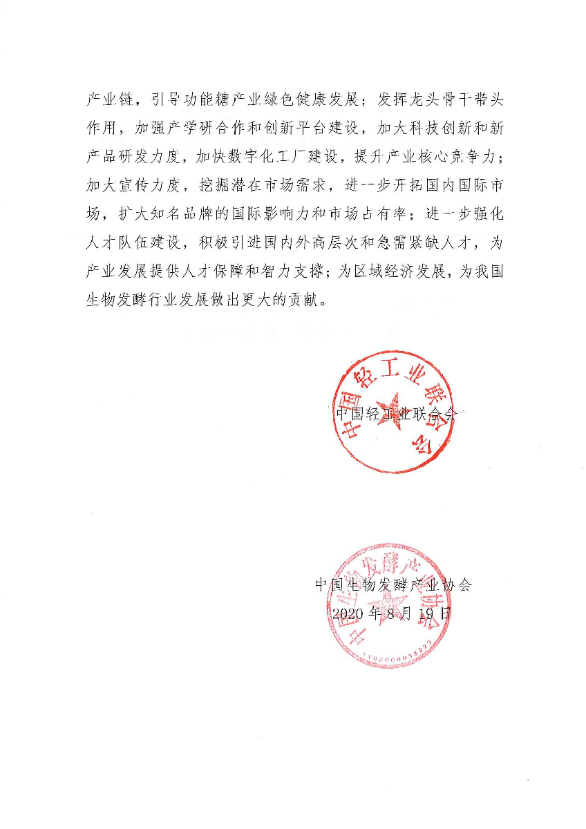 关于继续授予山东省禹城市“中国功能糖城·禹城”称号的通知