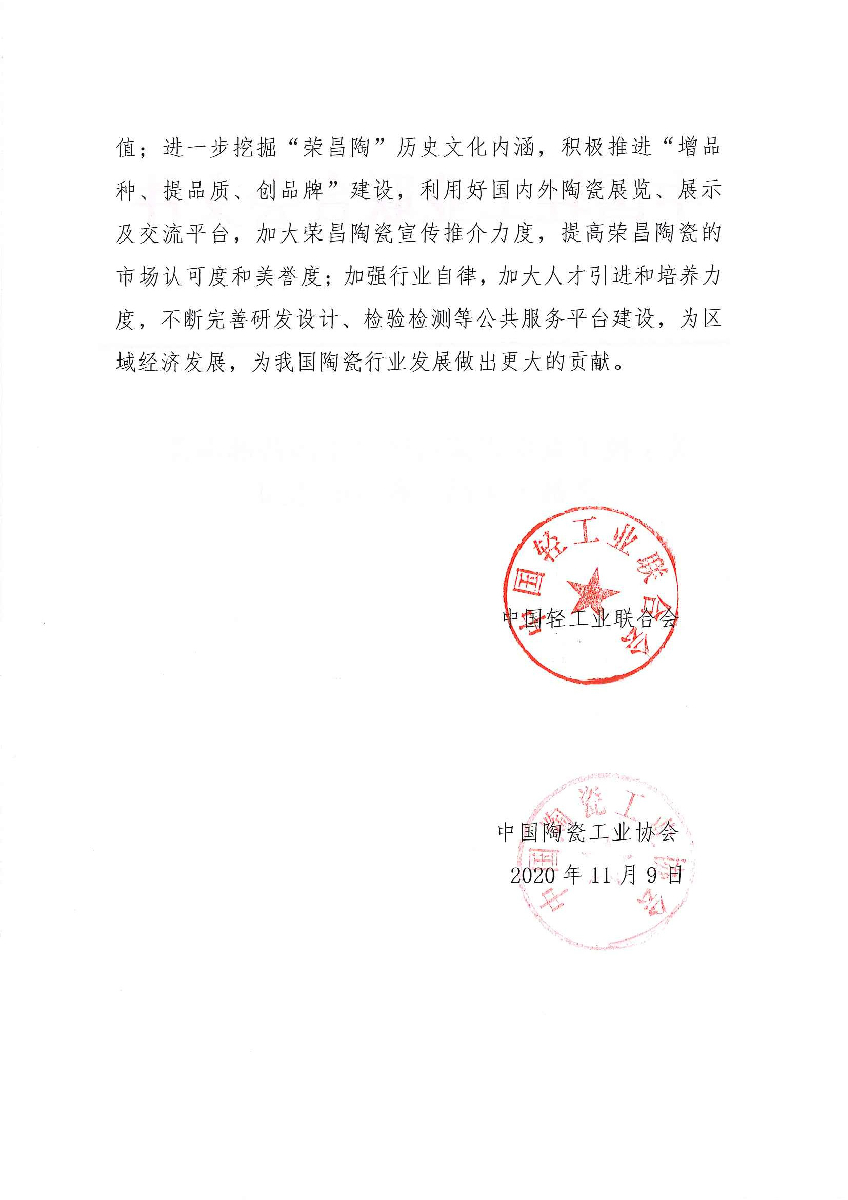 关于授予重庆市荣昌区“中国西部陶瓷之都·荣昌”称号的通知