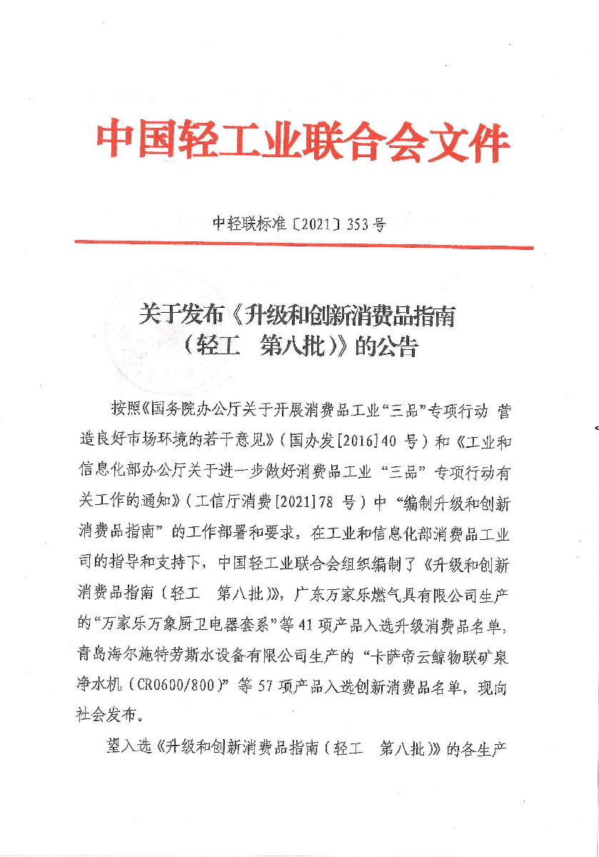 关于发布《升级和创新消费品指南(轻工 第八批)》的公告
