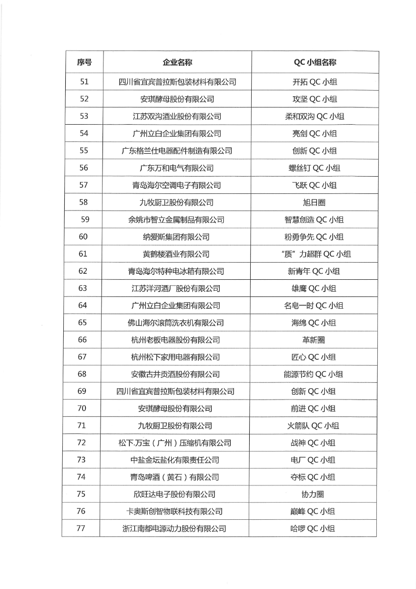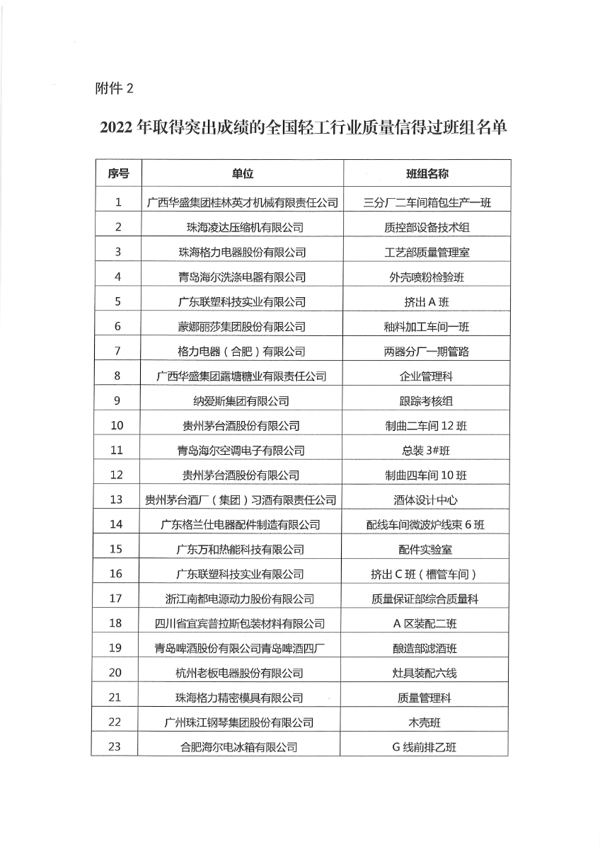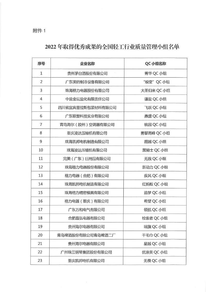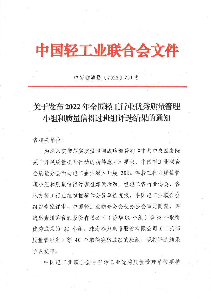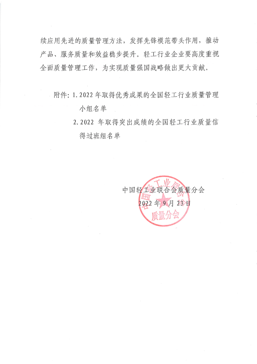关于发布2022年全国 优秀质量管理小组和质量信得过班组评选结果的通知
