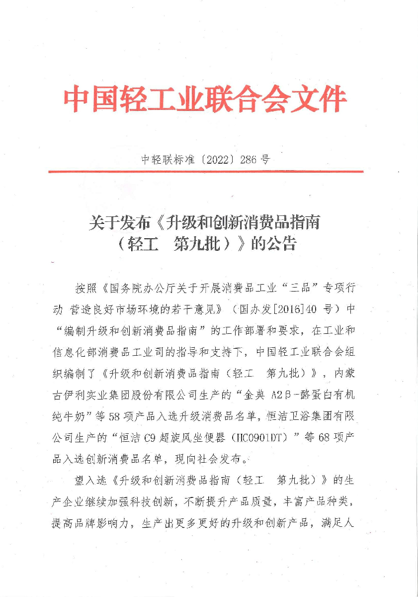 关于发布《升级和创新消费品指南(轻工 第九批)》的公告
