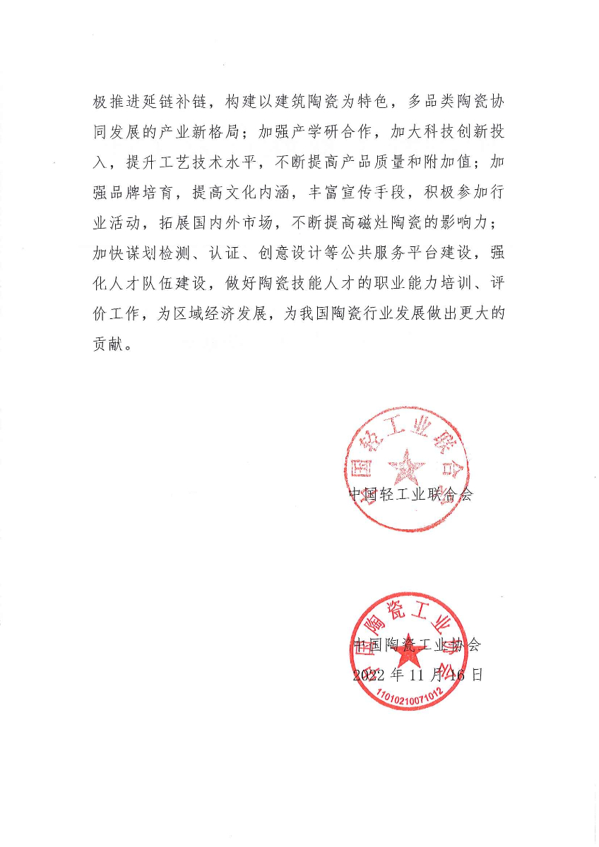 关于授予福建省晋江市磁灶镇“中国陶瓷名镇·磁灶”称号的通知