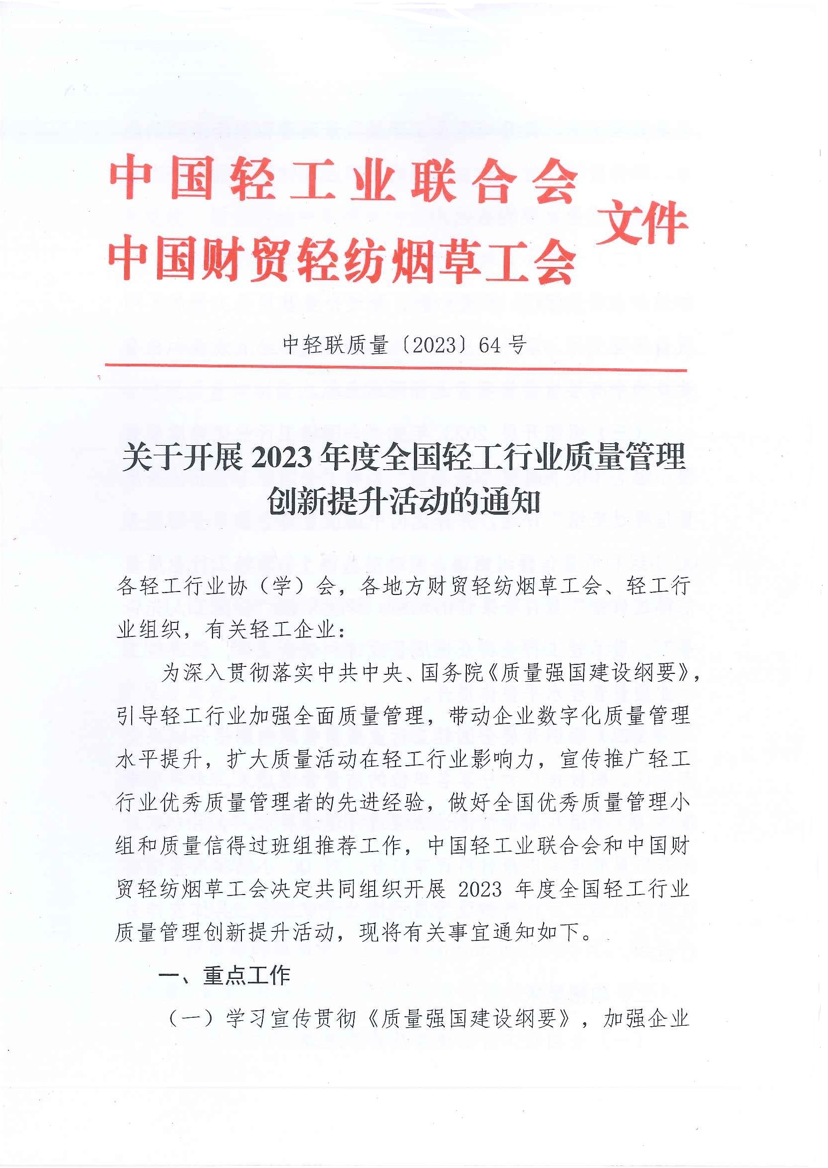 关于开展2023年度全国 质量管理创新提升活动的通知