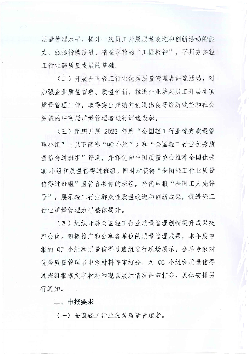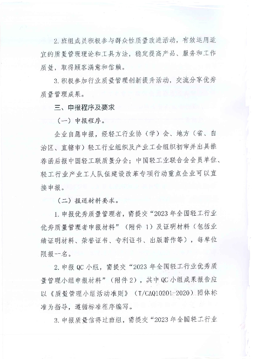| 1、 | 2023年全国 优秀质量管理者申报材料 |