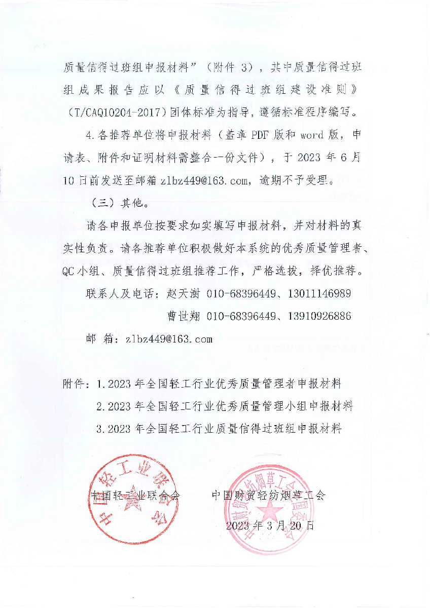 | 3、 | 2023年全国 质量信得过班组申报材料 |