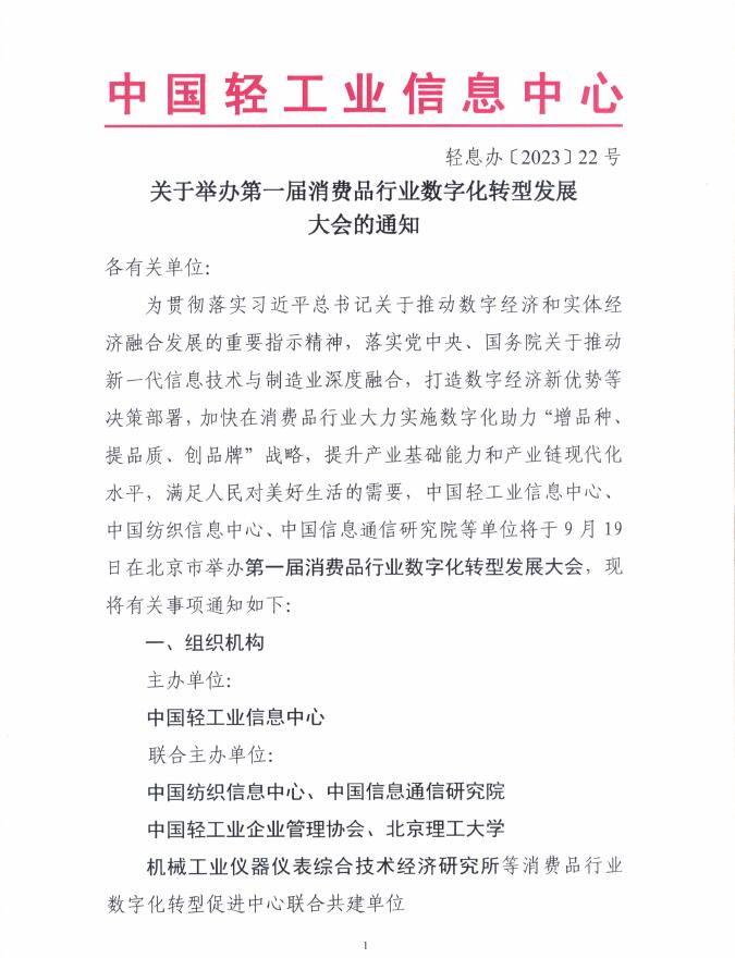 关于举办第一届消费品行业数字化转型发展大会的通知