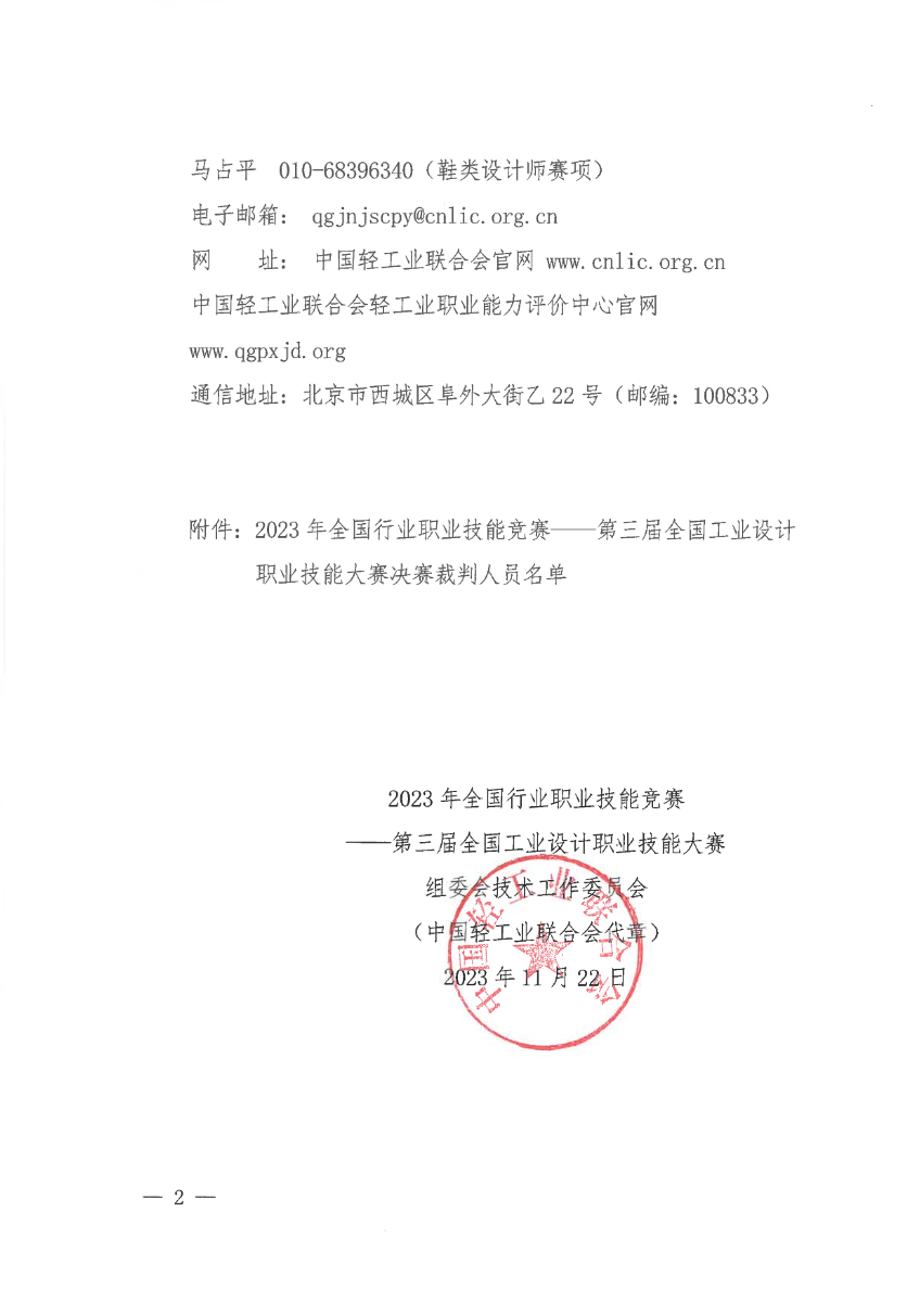 关于公示第三届全国工业设计职业技能大赛决赛裁判人员名单的通知