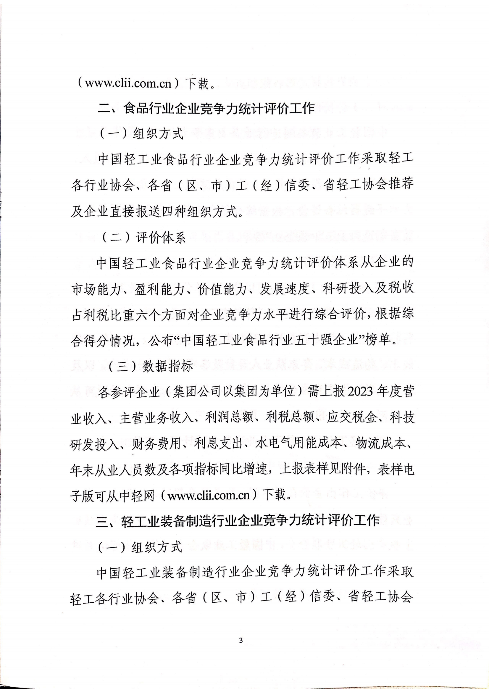 关于开展2023年度中国轻工业企业竞争力统计评价工作的通知