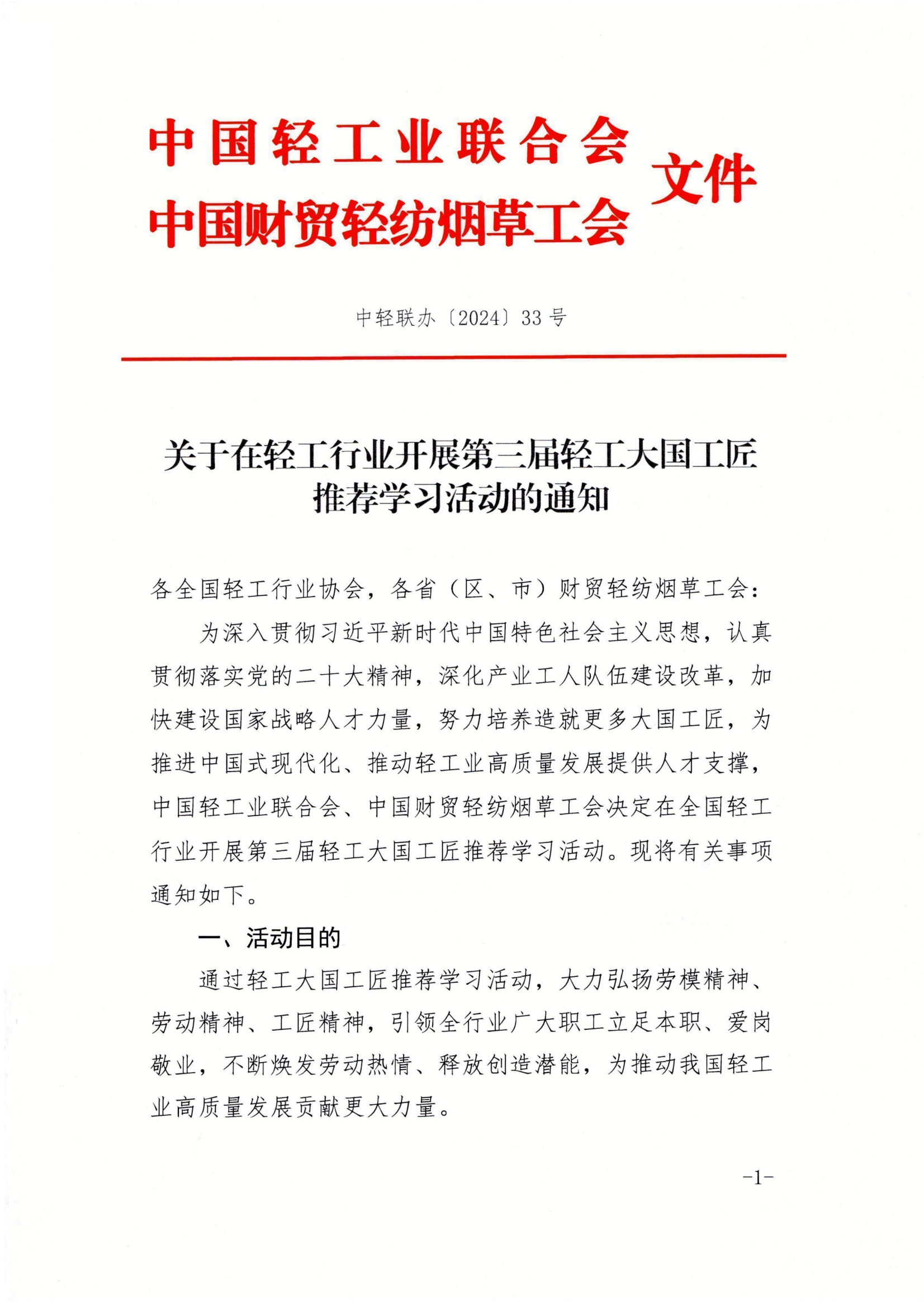 关于在 开展第三届轻工大国工匠推荐学习活动的通知