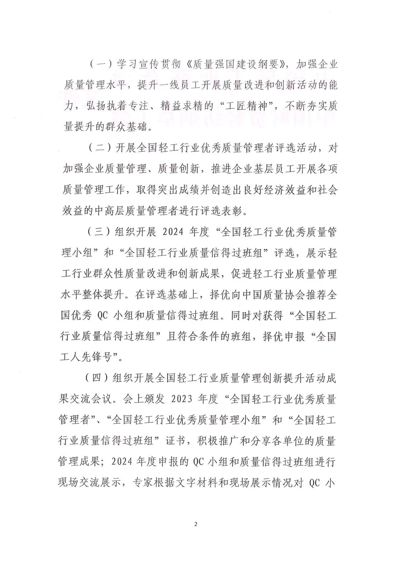 关于开展2024年度全国 质量管理创新提升活动的通知