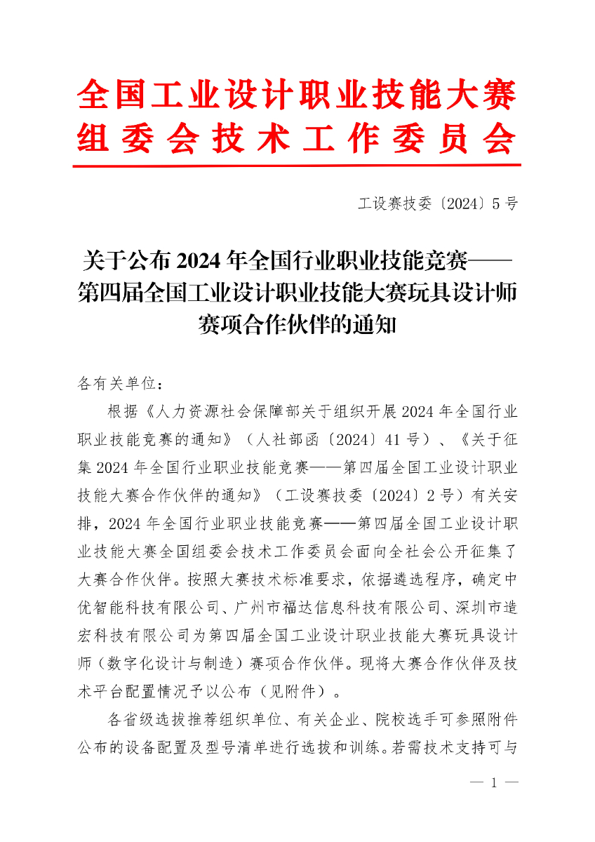 关于公布2024年第四届全国工业设计职业技能大赛玩具设计师赛项合作伙伴的通知