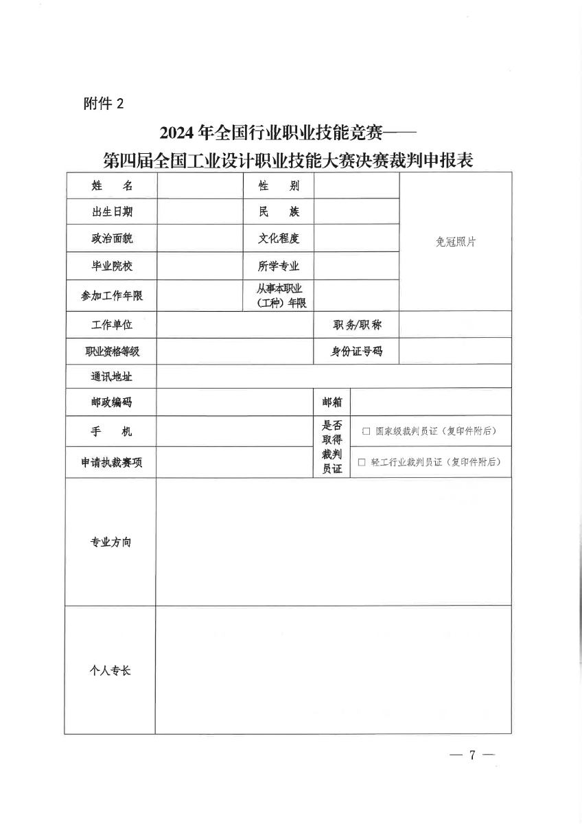 关于征集2024年第四届全国工业设计职业技能大赛决赛裁判的通知