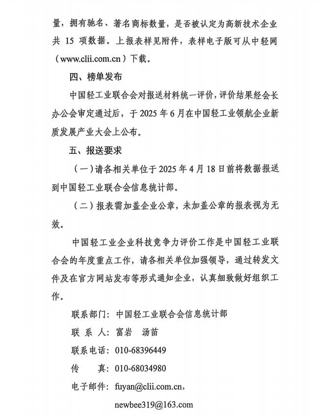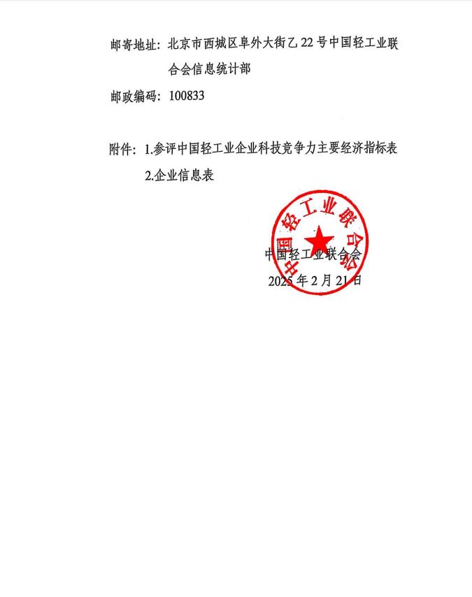 2024年度中国轻工业企业科技竞争力统计评价工作的通知