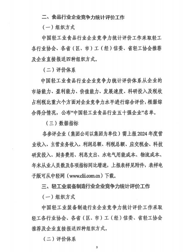 2024年度中国轻工业企业竞争力等统计评价工作的通知