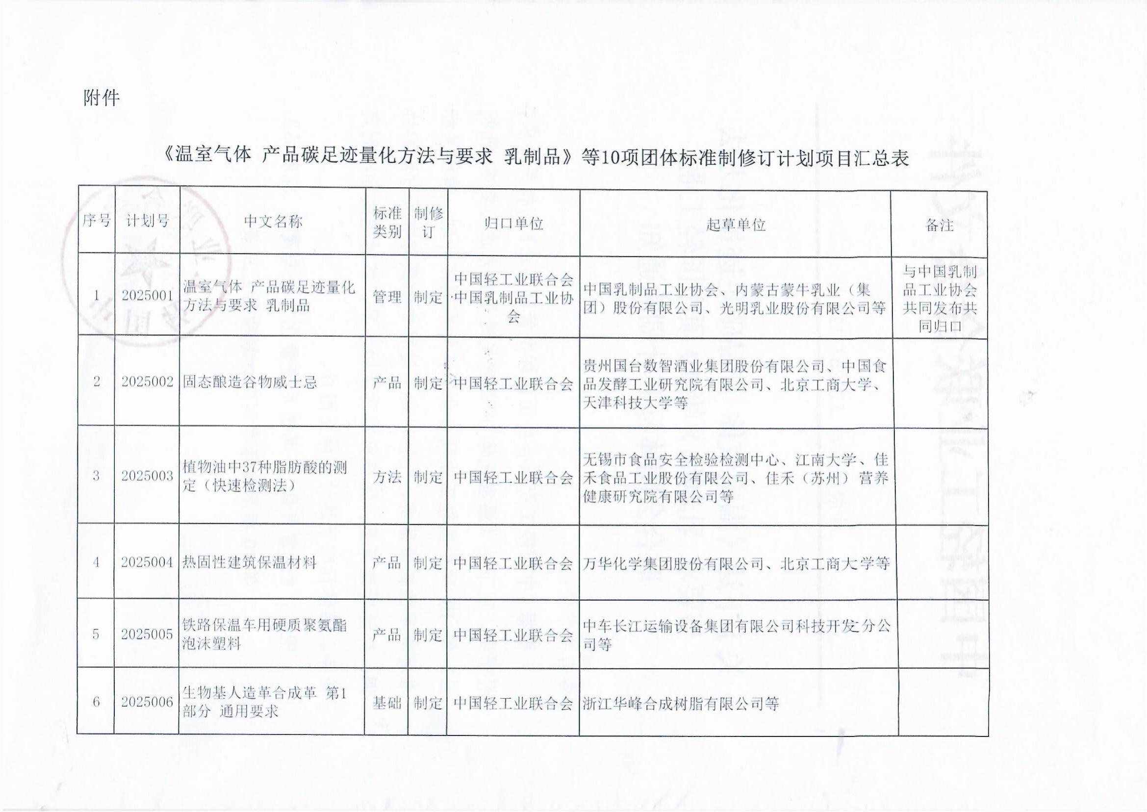 关于下达《温室气体产品碳足迹量化方法与要求乳制品》等10项 团体标准计划的通知