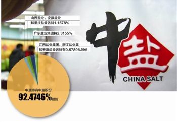 社会责任报告显示,中盐持有中盐股份92.4746%股份,山西盐业、安徽盐业和重庆盐业各持1.1578%,广东盐业集团持2.3155%,江西盐业集团、浙江盐业集团和天津盐业各持有0.5789%股份。