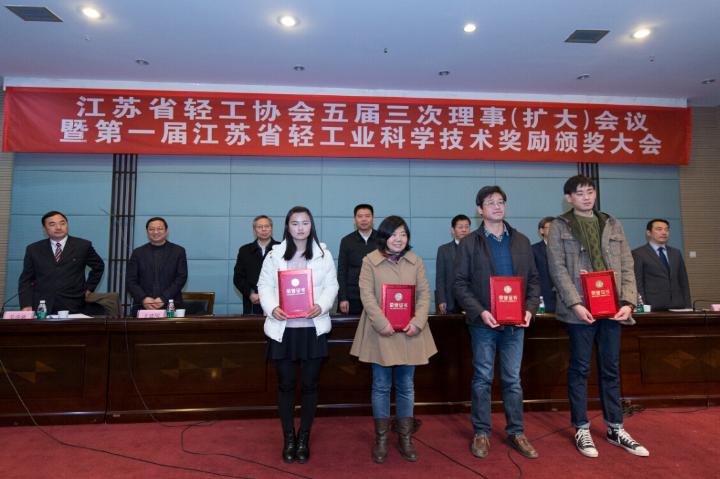 2015年度江苏省轻工业科学技术奖励授奖项目共53项,其中29项技术创新来自高校,多项成果涉及社会民生。大会授予“白芨功效牙膏研发”等4项成果科学技术发明奖二等奖,授予“乳液泵防进水机构”等8项成果科学技术发明奖三等奖,授予“黄水综合利用新技术的研究”等7项成果科学技术进步奖一等奖,授予“生物质环保型强化地板的研究与产业化”等20项成果科学技术进步奖二等奖,授予“绵柔型白酒酿造关键技术集成研究及应用”等14项成果科学技术进步奖三等奖。