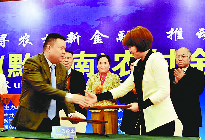 为加强农产品品牌保护,促进农村金融战略化发展,由中共黔西南州委、黔西南州人民政府、商务部国际商报社共同主办,中共黔西南州委宣传部、中共兴仁县委、兴仁县人民政府承办,贵州薏仁集团协办的以“探寻农村新金融,推动农村新发展”为主题的“首届中国(黔西南)农村金融发展高峰论坛”于2014年11月9日在贵州省黔西南布依族苗族自治州兴义市召开。来自国家主管部门领导,金融、财经界的知名专家、学者与地方企业高管200余人汇聚一堂,针对涉农金融话题深入的研究和探讨。与会嘉宾分析了农村多元化服务需求,调研了农村金融脱农化问题原因,探索了涉农产品的品牌化发展战略,提升了中国农产品走出去的抗风险能力。