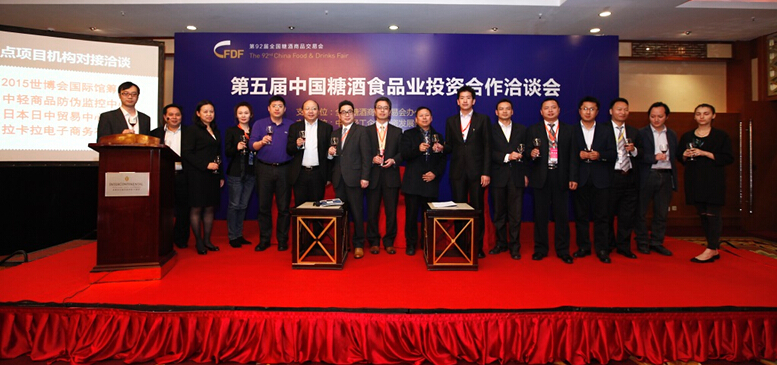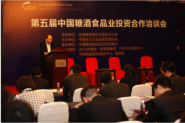 2015年3月25日下午13时,由中国轻工企业投资发展协会主办的第五届中国糖酒食品业投资合作洽谈会在第92届糖酒会上举办。本届投洽会以“大消费时代下的糖酒食品业”为主题,高规格高层次地讨论了行业的市场趋势、企业融资、O2O、食品防伪溯源、海外进出口贸易等热点话题。邀请了世博会组委会、日本日中贸易中心、中轻商品防伪监控中心、拉卡拉电商等平台机构,新希望集团、平安银行等近100家投资机构参会洽谈。全国糖酒会办公室主任古平到会致辞,他认为投洽会为酒类和食品企业与投资机构间搭建了桥梁,起到了非常重要的平台作用。本届投洽会引发了业界的高度关注,跨国企业、酒食业名企、国际运营商、相关专家及企业代表约300多人出席了会议。