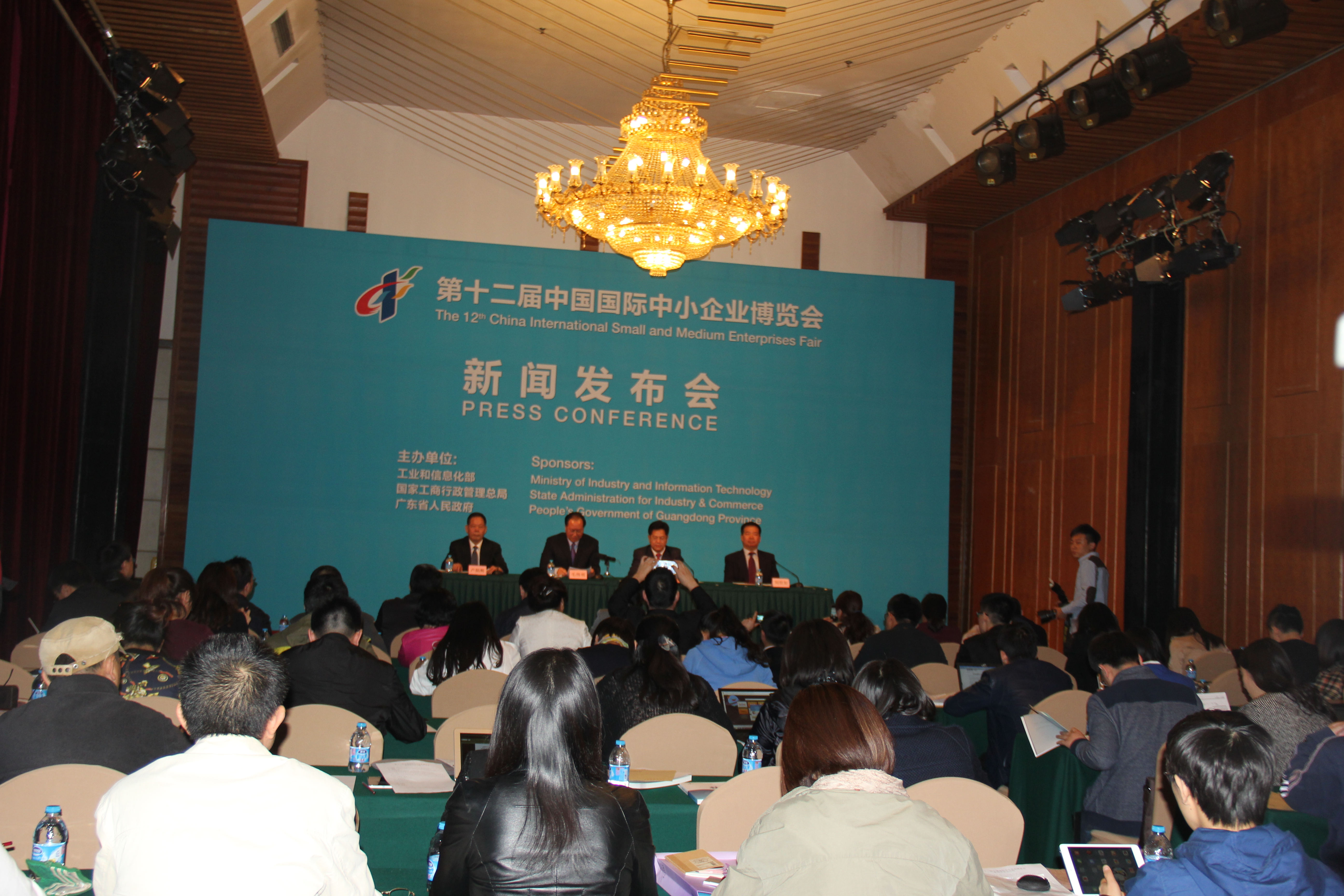 第十二届中国国际中小企业博览会新闻发布会于4月16日在北京举行。由工业和信息化部、国家工商行政管理总局和广东省人民政府联合主办的第十二届中博会将于2015年10月10日在广州开幕。发布会由中博会组委会秘书长、广东省人民政府副秘书长卢炳辉主持。组委会副主任、工业和信息化部副部长毛伟明出席并介绍博览会筹备情况。组委会副主任兼执行主任、广东省人民政府副省长刘志庚,中博会组委会秘书处副主任、国家工商总局个体私营经济监督管理司副司长刘世如出席会议并回答记者提问。
