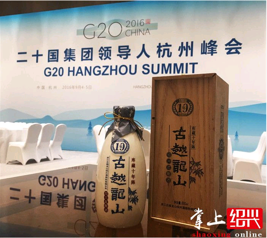 一杯绍兴美酒,浓浓中国深情。G20峰会在杭州举行,作为浙江特产,以古越龙山为代表的绍兴黄酒自然成为招待贵宾的佳酿。浙江古越龙山绍兴酒股份有限公司在6月下旬便接到了G20峰会后勤保障方的通知,要求订购古越龙山黄酒产品。古越龙山50年陈、30年陈、20年陈、10年陈礼盒酒,以及果酒桂花酒、青梅酒、大坛甜酒香雪酒,还有三年陈加饭酒作为料酒,共8款酒入选G20峰会黄酒保障用酒。柏宏告诉记者,古越龙山还专门资助G20峰会用酒6000瓶10年陈木盒酒,另外还根据阿里巴巴总部要求,制作五盒20年陈特殊包装的礼盒酒,这是马云送给到阿里巴巴总部的重要贵宾的礼物。