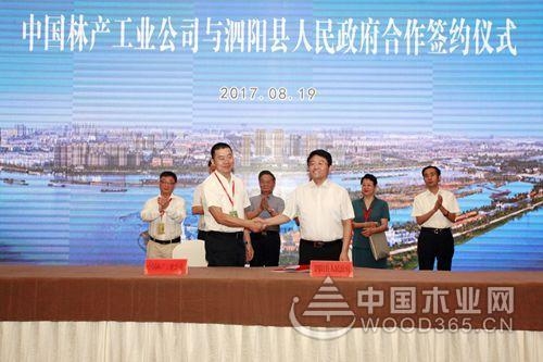 中国林产工业公司副总经理屈永军与泗阳县委副书记、县长马伟共同签订合作协议。中国林产工业公司将在泗阳投资50亿元建设“中林泗阳”项目,打造苏北国家级木材加工转型升级示范园区,以此促进泗阳家居制造产业向集约化、专业化、精致化和生态化发展。