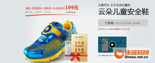 “云朵”这款童鞋的最大特色是增加了一块物联网通信芯片,能够接入中国移动的2G网络,实现定位和通信,家长可以通过配套的智能手机应用确定孩子的位置。如果没有信号,则会被告知最后一次有信号的位置。目前“云朵”已在网上开放预约与免费试用,据报道产品将于本月内上市。