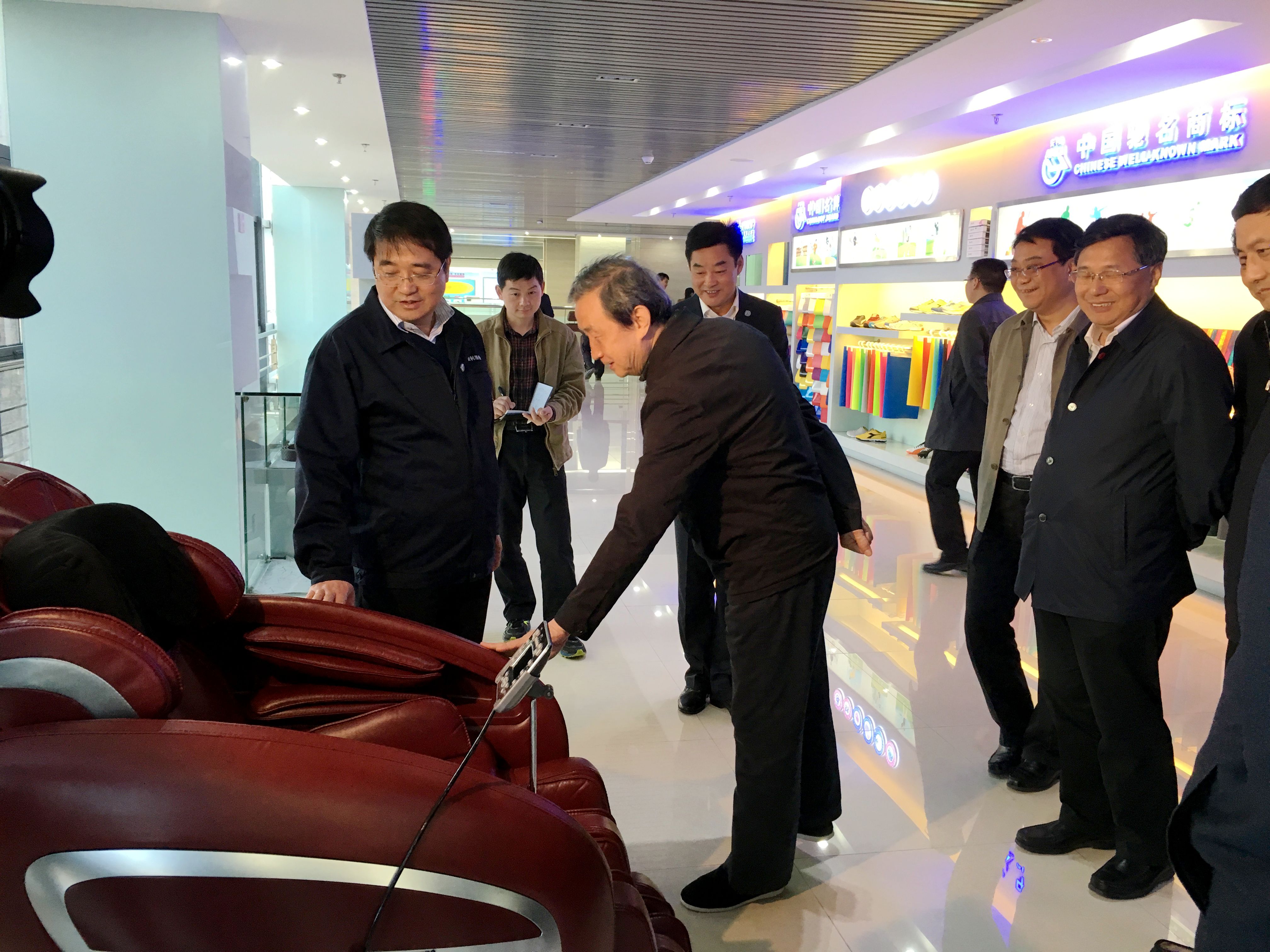 在安利股份文化展示厅,马凯副总理听取了董事长、总经理姚和平对安利发展历程和经营理念的汇报,对安利良好的经营思路经营理念频频点头赞许。在产品展示厅,马凯副总理走近琳琅满目的安利聚氨酯合成革、聚氨酯复合材料和加工制成品,并不时拿起样品,仔细观察。他在沙发家具材料前停留,询问了沙发家具面料的花纹及功能,同时对新颖时尚、色彩明快的女鞋、运动休闲鞋印象深刻,并在一张使用安利材料加工制作的按摩椅前驻足,饶有兴致地用手抚摸按摩椅的椅背和扶手两端,而后微笑着称赞安利材料“质感很好,很舒适,颜色优雅大方”,鼓励安利产品要全力“走出去”,为全球消费者提供健康生活新材料。当得知安利产品已出口到全球70多个国家和地区,并与众多国内外一流品牌合作时,马凯副总理点头称赞,“创新成就一流品牌,不简单!”