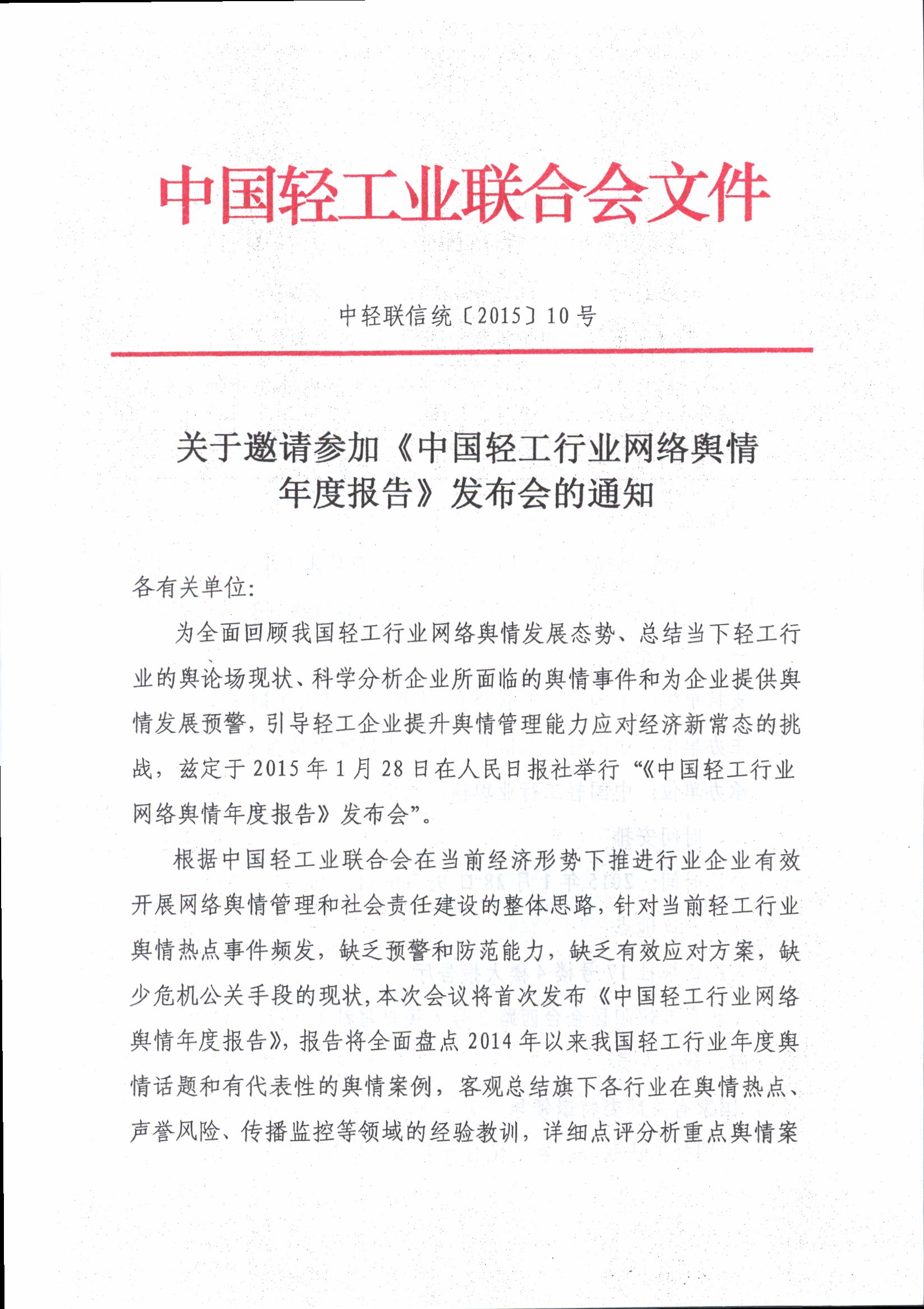 | 2、 | 关于邀请参加《中国 网络舆情年度报告》发布会的通知PDF版 |