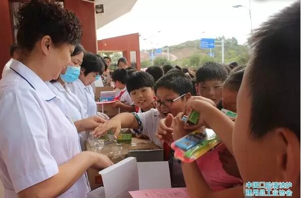 在全国第28个爱牙日里,中国口腔清洁护理用品工业协会在部分会员企业的大力支持下,在我国著名革命老区,安徽省金寨县举办了一次有声有色的公益宣传与扶贫捐赠活动。活动包括口腔健康教育、口腔疾病义诊、口腔护理产品和宣传册捐赠,以及贫困中小学生帮扶等。参加活动的有300多名中小学生和金寨县各中小学校老师代表,以及县政府相关部门负责人。金寨县县委常委、组织部长到会讲话并为协会赠送锦旗。活动取得圆满成功。