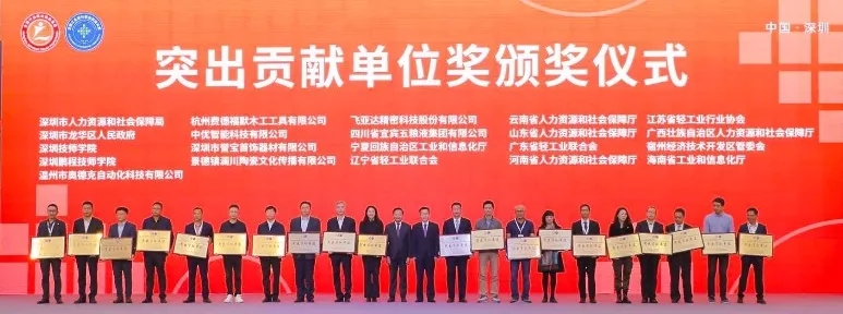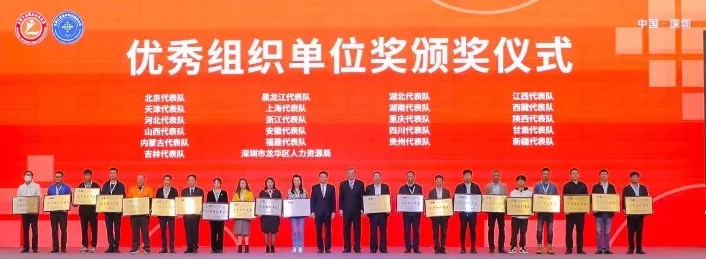 闭幕式上,深圳市人力资源和社会保障局等21家单位获得突出贡献单位奖、北京代表队等22个团体获得优秀组织单位奖,王成钢等55名选手荣获一等奖、黄波林等141名选手荣获二等奖、龚如梅等33名选手荣获三等奖,汤涛、张崇和等领导进行颁奖并合影留念。本次大赛还评选出深圳技师学院等10家冠军选手单位、禹诚等33名优秀教练及裴继刚等15名优秀裁判员。