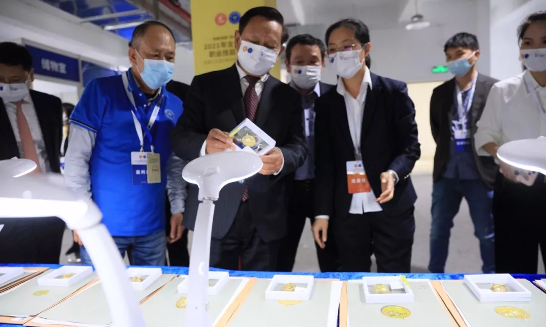 闭幕式前,张崇和一行来到赛场,在各裁判长的讲解下,对设计师成果做详细了解。在鞋类设计师赛区,张崇和了解了本次竞赛首次融入数字化、智能化设计技术的创意,肯定了通过设计引领行业高质量发展的方向;在无损检测员赛区,张崇和拿起了用3D打印技术制作的智能小车,观看了选手操控产品过程,询问了无损检测赛项在实际中的应用价值,对参赛者出色的数据采集处理、三维逆向设计、工程出图和快速成型操作等能力给予了肯定和赞赏;在陶瓷设计师赛区,张崇和对选手设计的酒具赞不绝口,认为多款学生设计的产品造型新颖,职工组选手工艺精湛,实现了使用功能和外观审美的同步融合;在首饰设计师赛区,张崇和饶有兴致地欣赏了一二三等奖的设计作品,他表示,选手能在18个小时内完成从设计到制造的全过程,而且成品造型精美,想象力丰富,做到灵感碰撞与创意的实现,充分发挥了创新能力,展现了金工技巧;在家具设计师赛区,张崇和对学生组为儿童设计的产品能考虑到圆角等安全问题,职工组设计的餐边柜应用好榫卯结构、以及在短时间内能完成多组活动部件并做好实木贴皮十分满意,他认为大赛充分展现了中国家具设计悠远的传承与时代的创新,多款产品已经可以量产。