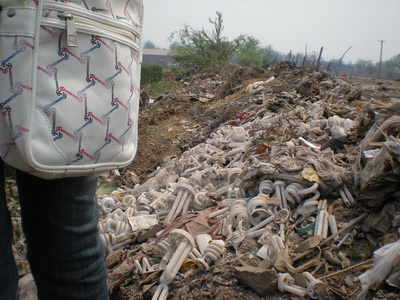 具体每年处理多少支节能灯,交多少钱,这个经理都说不清楚。那么这家车间是否真的出钱将这些含汞的报废灯管交给专门回收的有机化工厂了呢?记者在寻找节能灯回收公司的路上却发现,镇上的街道旁和农田边却到处可以看到被丢弃的报废节能灯,甚至在一所小学的门口,也出现了报废节能灯的垃圾堆,目前,含有汞的废旧节能灯已经明确被列入《国家危险废物名录》,但是这里很多地方却成为了这些危险废物的天然垃圾场。记者在镇上转了两个多小时,并没有找到那位经理所说的报废节能灯的回收处理公司,而是在一家卖节能灯的小店门前,看到了已经打包成袋的报废堆在门口。