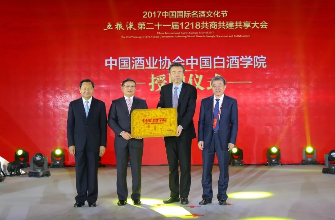 会议还举行了中国酒业协会中国白酒学院、中国白酒酿酒培训基地授牌仪式,四川理工学院五粮液白酒学院揭牌仪式。张崇和会长、王延才理事长对中国酒业协会中国白酒学院、中国白酒酿酒培训基地进行了授牌,王洪辉书记、李曙光董事长,刘中国总经理、邹涛副书记分别接牌;庹先国校长、刘中国总经理为四川理工学院五粮液白酒学院揭牌。
