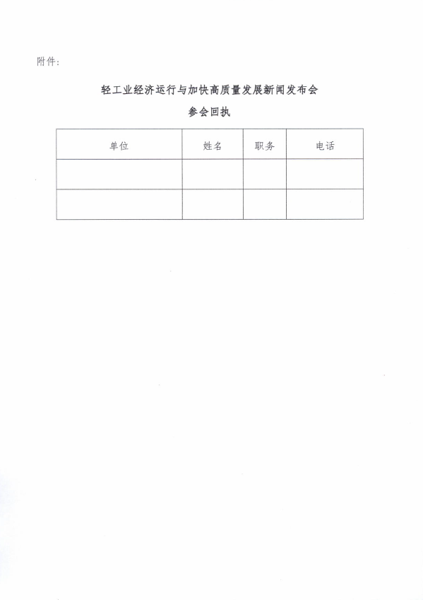 | 1、 | 关于召开“轻工业经济运行与加快高质量发展新闻发布会” 的通知 |