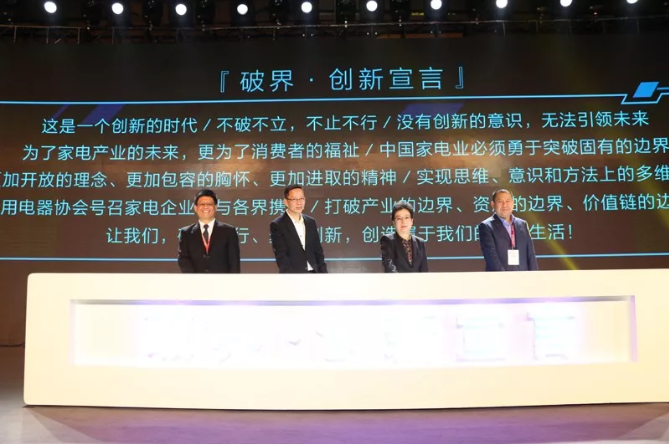 “这是一个创新的时代,不破不立,不止不行”,中国家电行业30年历程的见证者、中国家用电器协会理事长姜风感慨而言。此次高峰论坛的尾声,姜风代表中国家用电器协会发布《破界,创新宣言》,“没有创新的意识,无法引领未来,为了家电产业的未来,更为了消费者的福祉,中国家电业必须勇于突破固有的边界,以更加开放的理念,更加包容的胸怀,更加进取的精神,实现思维、意识和方法上的多维度跨界。”