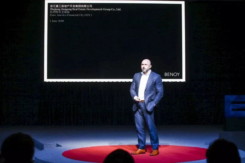在进入主旨演讲环节,国际知名商业设计机构——Benoy(贝诺)董事Craig Manzies先生。他现场分享目前国际商业设计领域的新理念趋势,“这个几年,我们打造了EFC,让环境和建筑融合在一起,呈现出一种发展新科技的理念;在室内设计上面我们采用现代化理念,我们的设计理念是将它打造成为一个最具有发展潜力的杭州旅游目的地,为我们的现代社会服务,这就是EFC商业中心。”