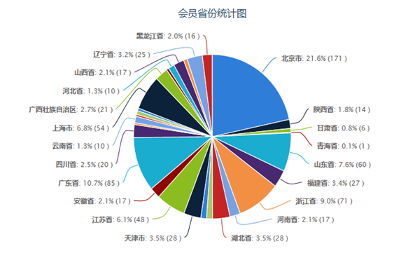 会员所在区域重点覆盖了华东和华南地区,占比前六名依次为北京市21.6%、广东省10.7%、浙江省9.0%、山东省7.6%、上海市6.8%和江苏省6.1%,除北京市因包括了直属单位、科研院校等占比较高,其他五个省市也是全国轻工业较发达地区。同时,会员构成也兼顾了西北地区的一些轻工业发展较为薄弱的省区,涵盖了除西藏、海南以外的29个省、自治区、直辖市。