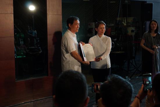 国家大剧院副院长朱敬女士向王建中教授颁发收藏证书