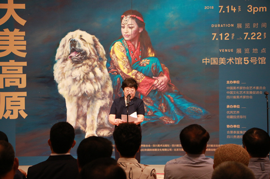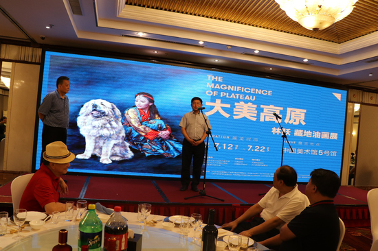 中国文联副主席、党组成员、书记处书记赵实宣布开幕,中国美协分党组书记、驻会副主席、秘书长徐里,四川省美术家协会主席梁时民,中国文化艺术促进会副会长王喆,合景泰富集团总经理蔡风佳,全美中国作家联谊会会长冰凌,四川省美协副主席、四川古玩收藏协会会长、著名油画家林跃分别在开幕式上致辞。