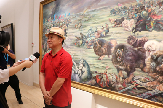 时隔8年,再次来到北京,并且在中国美术馆向大家汇报近10年来的新的作品,艺术家林跃非常激动,关于展览,他表示:“我酷爱藏獒的忠臣、勇敢和优秀的品质,多年来我有一个愿望,就是要与藏獒一起奔跑,与藏獒一起共生。由于对藏獒生命的尊重和关爱,以及对雪域高原的热爱,不断地促使我创作出一幅幅自己满意、社会各界认可的藏獒作品。今天呈现给大家的就是其中最有代表性的作品,希望大家能够喜欢。”
