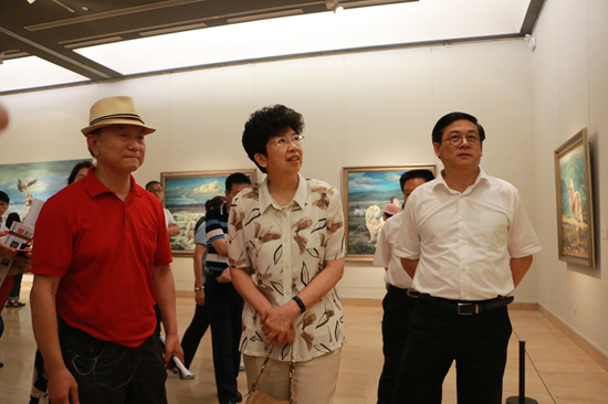 艺术家林跃陪同中国文联副主席、党组成员、书记处书记赵实、中国美协分党组书记、驻会副主席、秘书长徐里观看展览