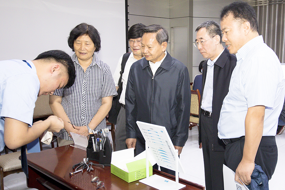 捐赠仪式结束后,张崇和、杜同和等领导视察了公益活动验配镜服务现场。眼科专家们认真询问职工用眼情况和眼镜使用的意见建议,讲解爱眼护眼保健知识,同时为科研人员现场验光、定配眼镜,建立个人眼底状况档案。