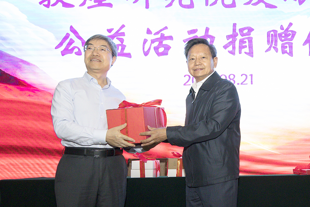捐赠仪式上,张崇和会长为敦煌研究院捐赠太阳镜和老花镜,赵声良院长接受捐赠。中国眼镜协会秘书长戴维平与中国教育发展基金会秘书长张中原签署公益活动合作协议。