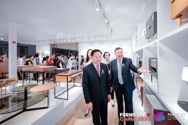 中国家具协会理事长徐祥楠、上海博华国际展览有限公司创始人王明亮,中国家具协会、各地方家具行业协会、家具行业企业负责人等陪同参观。